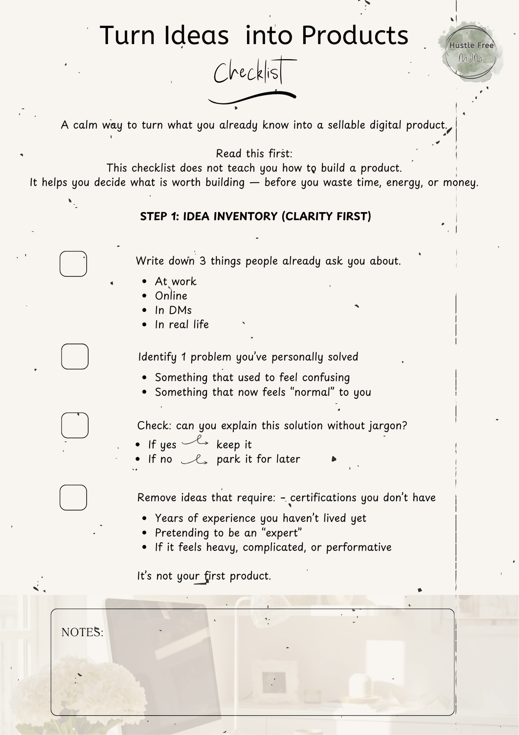 View the "Turn Ideas Into Digital Products - A Hustle Free Mom Guide